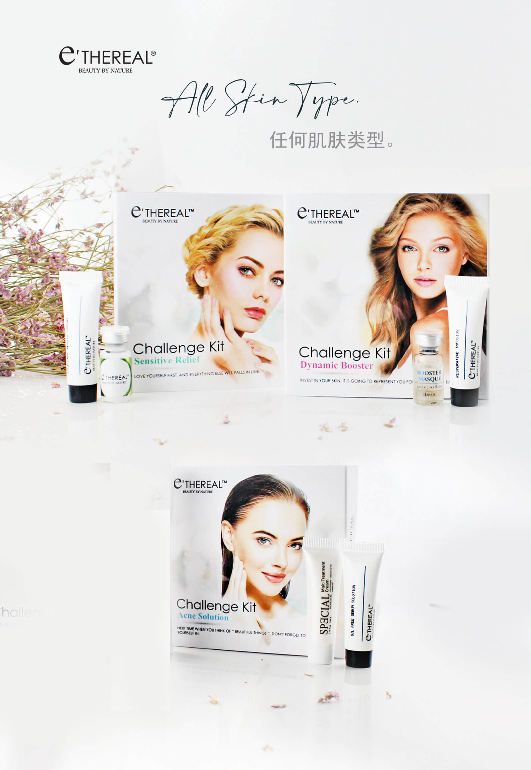 Not sure what to choose? Explore our variety of mini challenge kits. Each kit includes two products addressing different skin needs for a customized skincare solution.