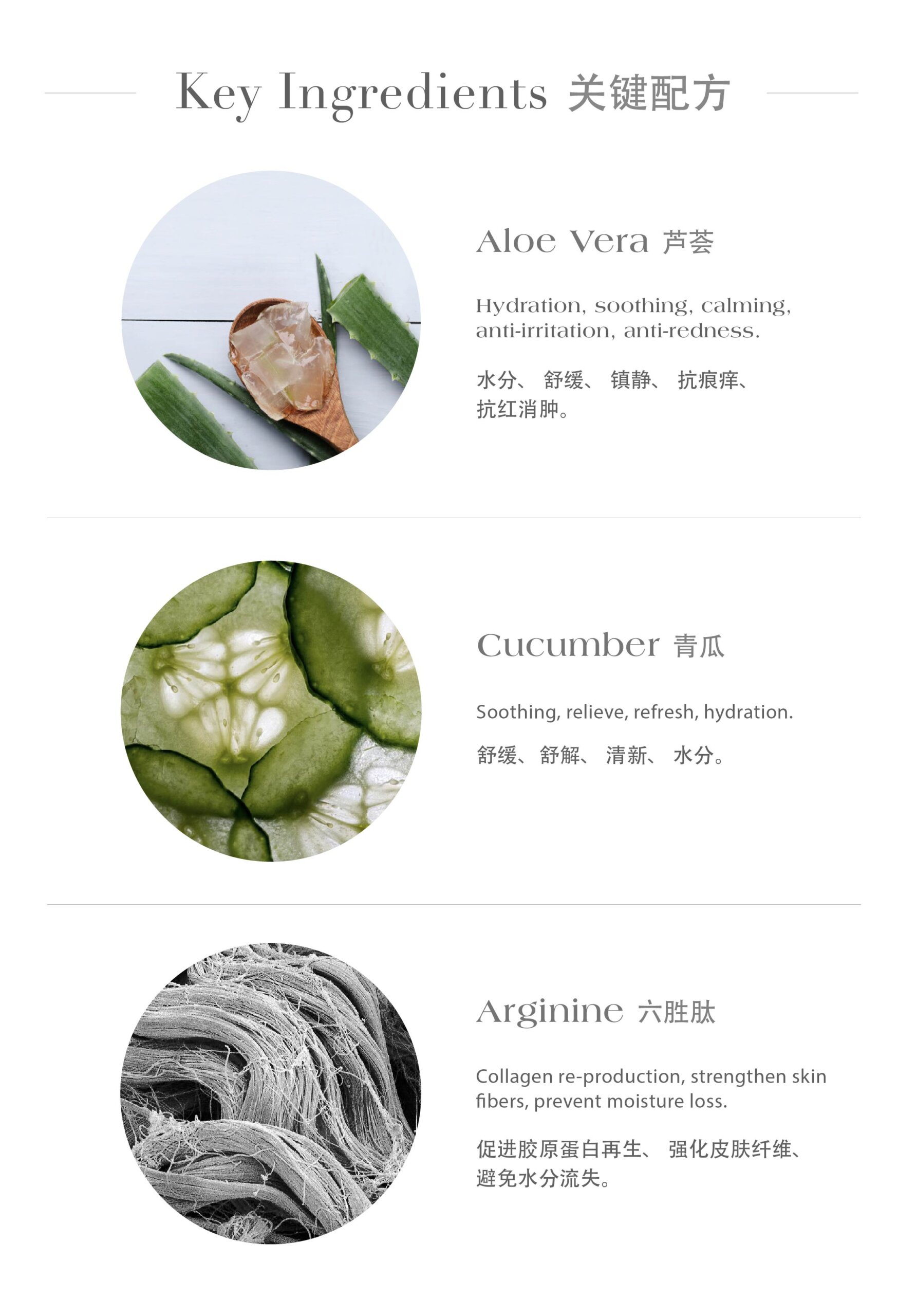 Spread evenly all over the face and neck with light circular massage movement till fully penetrate, or apply think layer as a mask and leave on for 20-30 mins for soothing purpose, then rinse off.