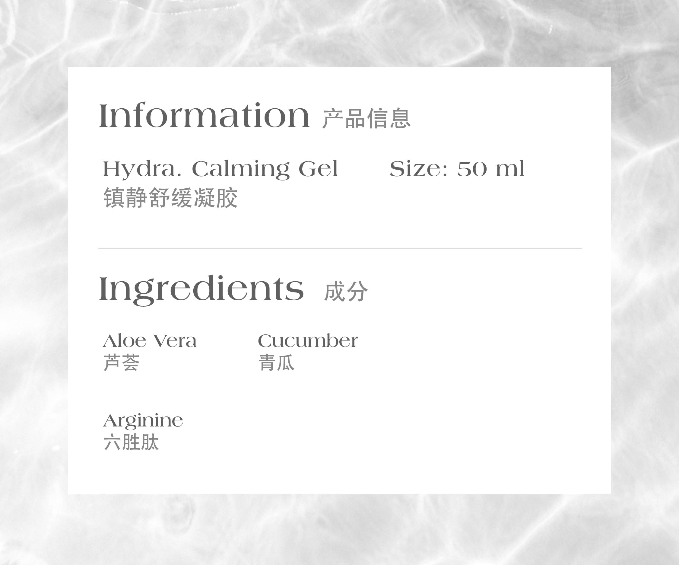 A face serum with a strong soothing and stabilizing effect. It instantly reduces skin irritation and promotes cell stability. Hydra Calming Gel hydrates, moisturizes, and softens the skin, ensuring prolonged calming and soothing results while maintaining a healthy radiance.