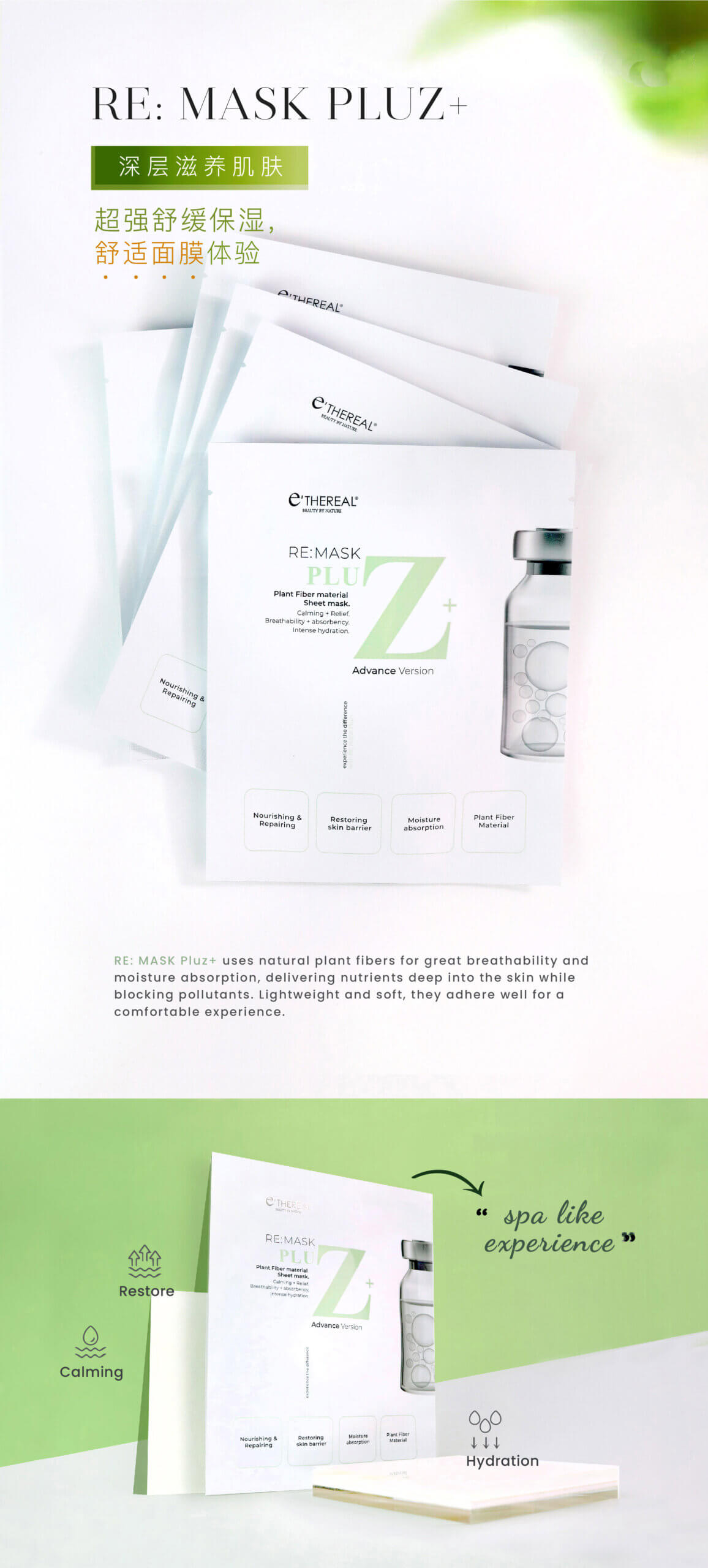After cleansing, apply a toner to prepare the skin. Then, place the RE: MASK PLUZ+ on your face and leave it on for 15-20 minutes. Once removed, gently massage the remaining essence into your skin until fully absorbed, and follow with your favourite moisturizer to lock in hydration.