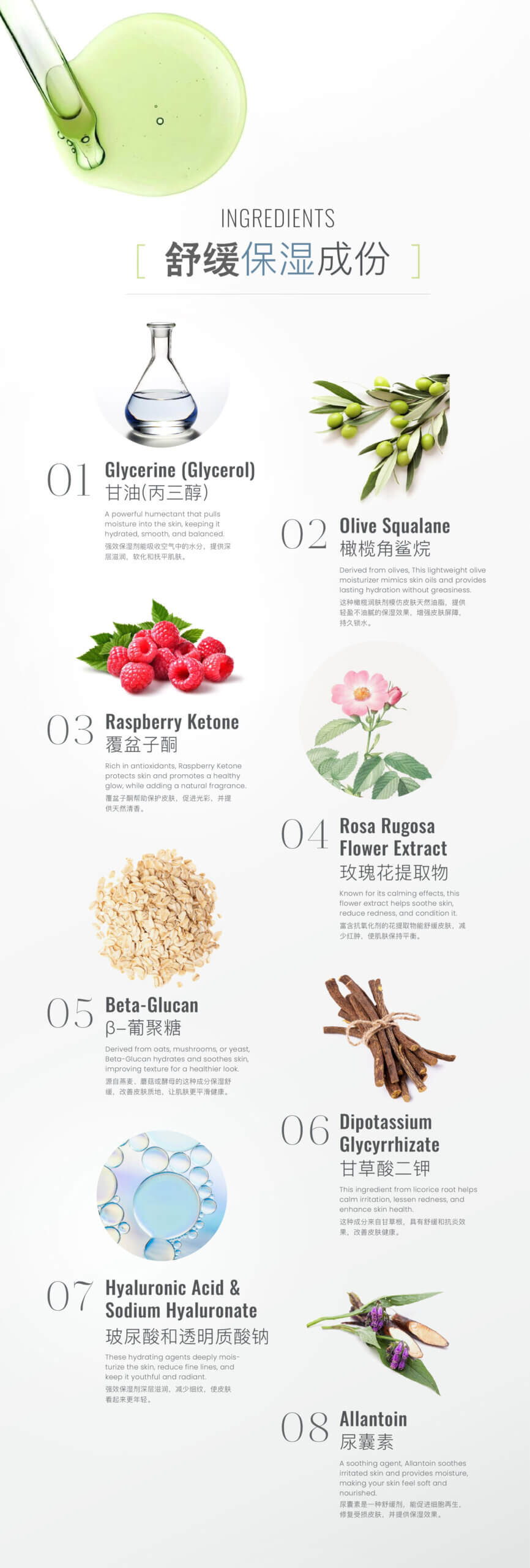 - Beta-Glucan: Anti-inflammatory & moisture texture smoother.(from oats or mushrooms***)